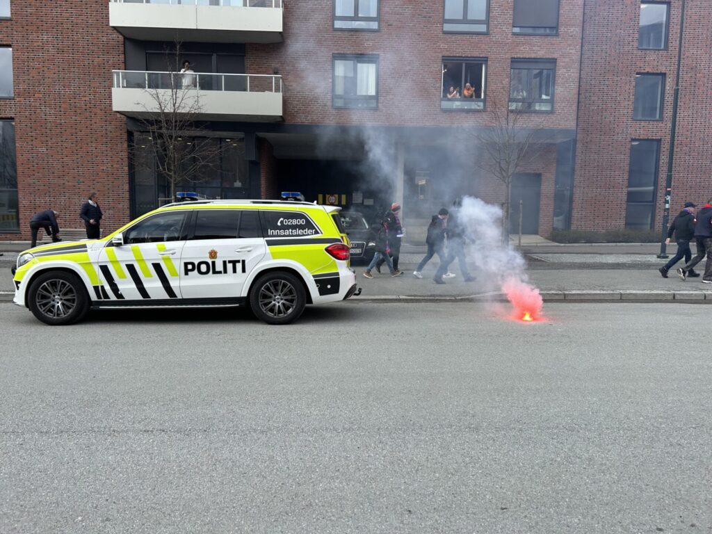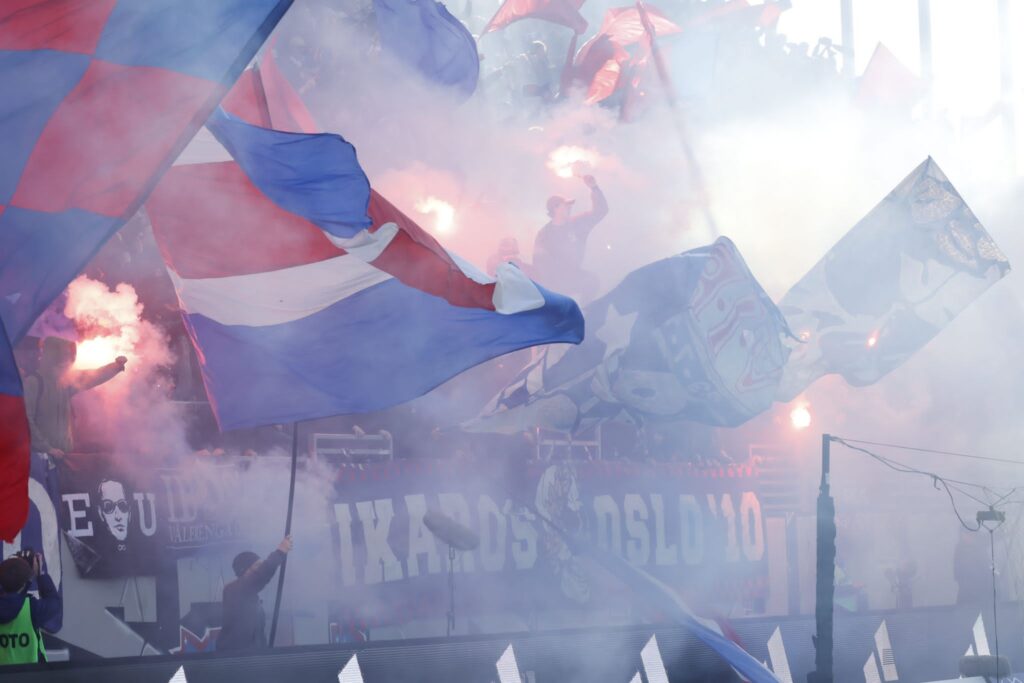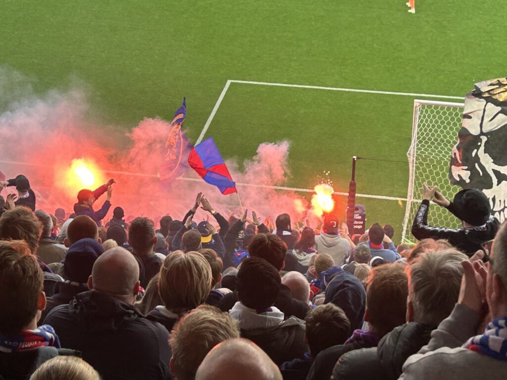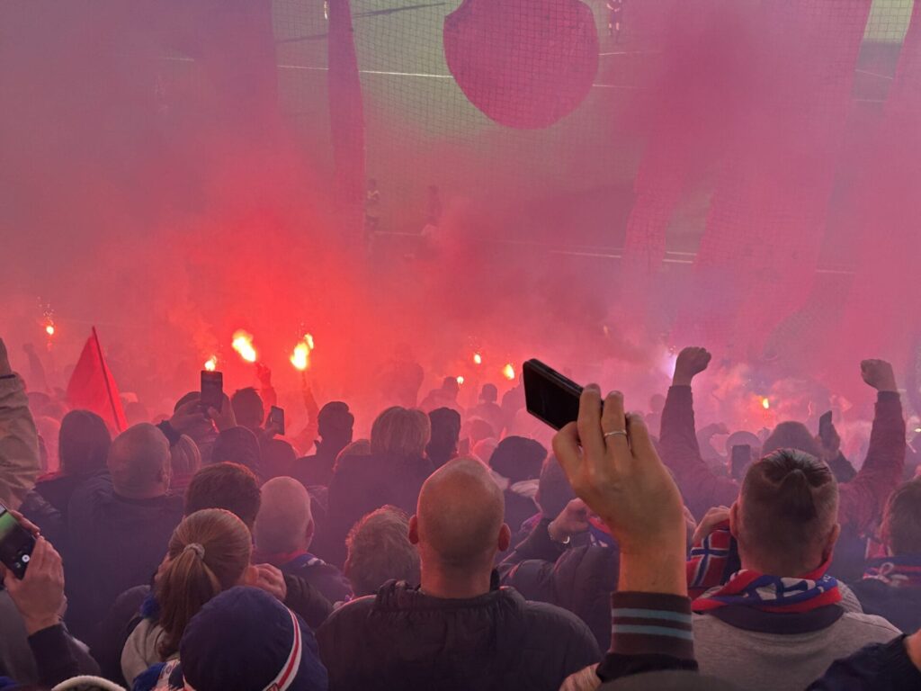 It was a short walk to the stadium which I couldn’t recall much of the journey, not because of the shots of alcohol but due to the amount of pyro that was going off in every direction. I quickly realised Guy Fawkes was probably a Valerenga supporter at some point in his life.